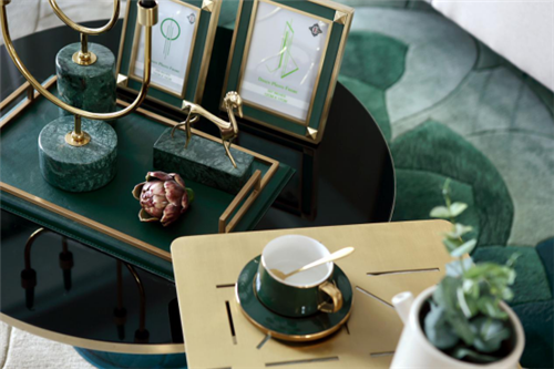 被定義成希望、神秘的綠色,在家裝搭配中,輔以金色鑲邊,突出整體的輪廓和氣質(zhì),形成一個(gè)新的聚焦點(diǎn),注重細(xì)節(jié),卻又不失大局思想。