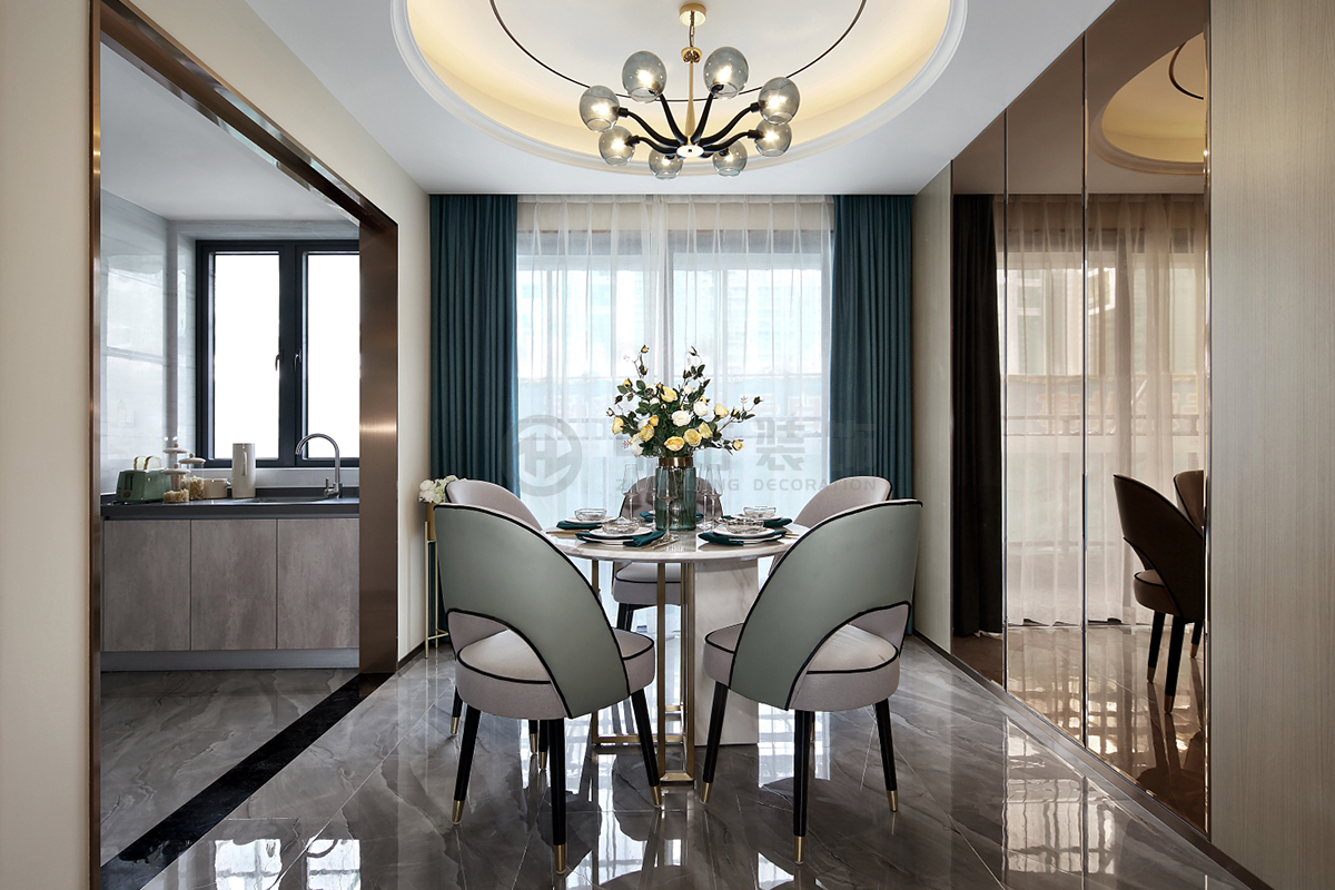 Δ 以清新淡雅的綠色系作為家居的主色調(diào),既有視覺上的跳躍韻律感,又搭配出豐富的層次; 恰似那一抹綠貫穿整個空間,營造有趣的家居氛圍。