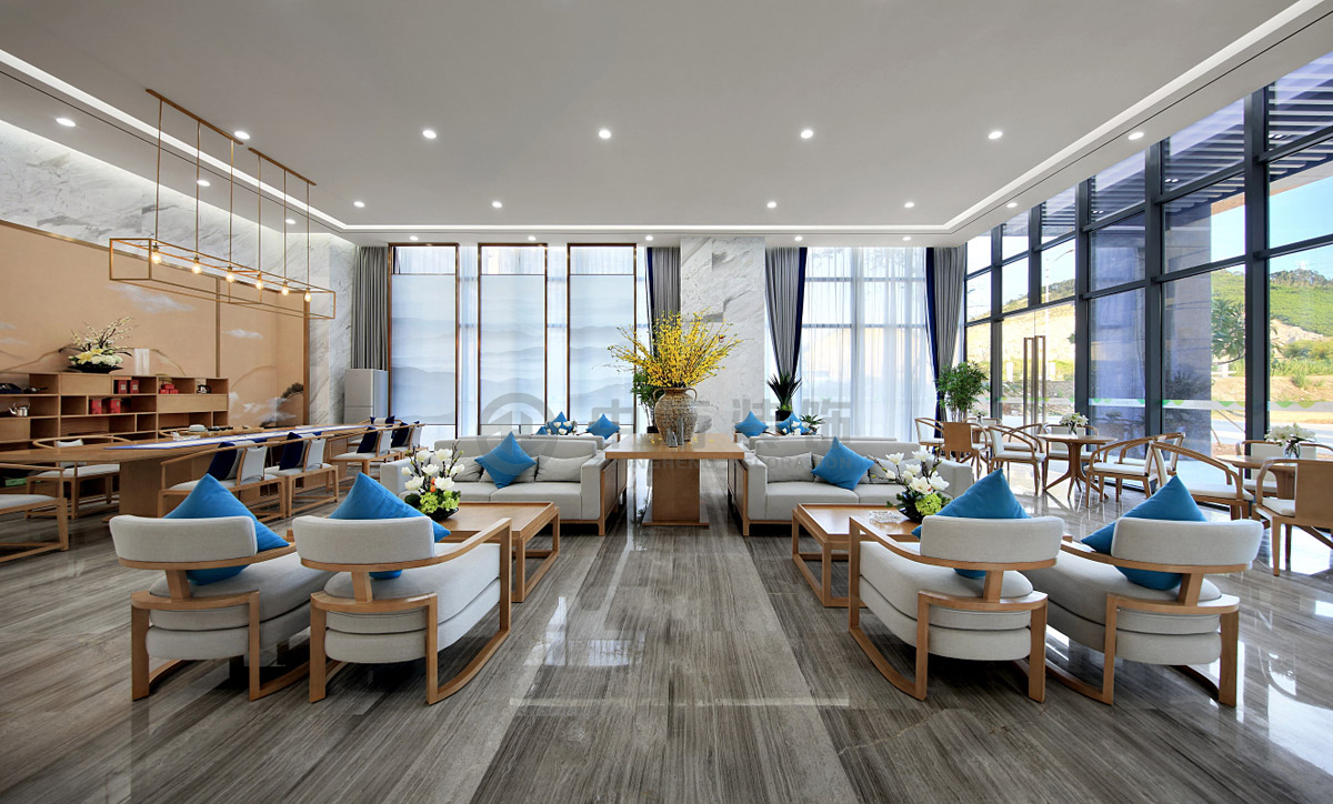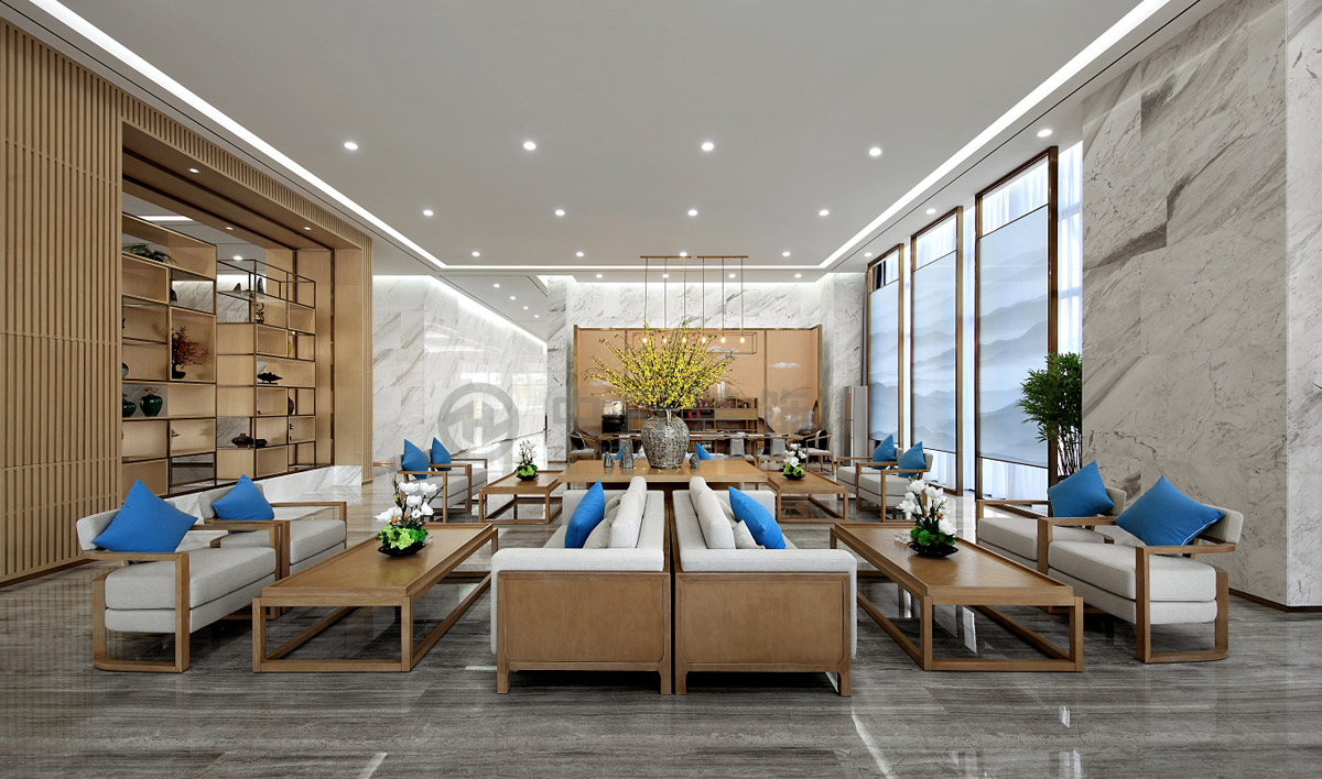 新中式具有內(nèi)蘊(yùn)的風(fēng)格,為了營造舒緩的意境,洽談區(qū)的整體設(shè)計(jì)與裝飾用到的沙發(fā),顏色仍然體現(xiàn)著中式的韻味與現(xiàn)代的簡(jiǎn)約,使整個(gè)室內(nèi)空間透著一股家的溫馨和舒適感。