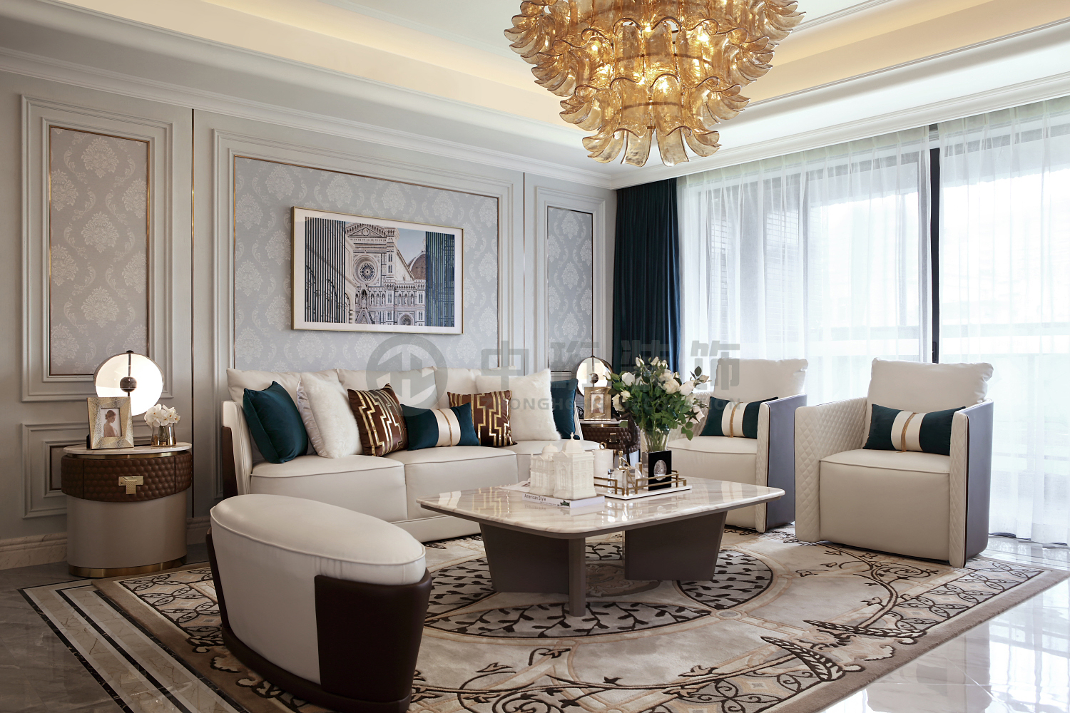 本案是180㎡的戶型,以經(jīng)典藍(lán)白色搭配,營造浪漫海洋的氛圍。微風(fēng)吹動(dòng),陽光透過蔚藍(lán)色的窗簾灑向整個(gè)空間,地中海式的熱情撲面而來??蛷d周圍放置金色鑲邊的擺件和燈飾,提升空間的整體格調(diào),清新且雅致。